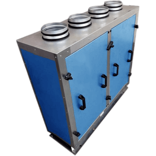 Приточно-вытяжная установка с рекуперацией тепла — представляет из себя моноблочное устройство, позволяющее экономить до 80% ресурсов за счет применения рекуператора — это узел установки, передающий тепло от удаляемого воздуха свежему, поступающему в помещение.